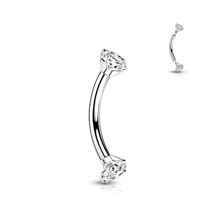 Titanium Internally Threaded 16G CZ Ends Curved Barbell