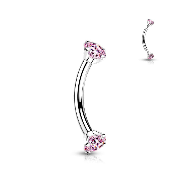 Titanium Internally Threaded 16G CZ Ends Curved Barbell