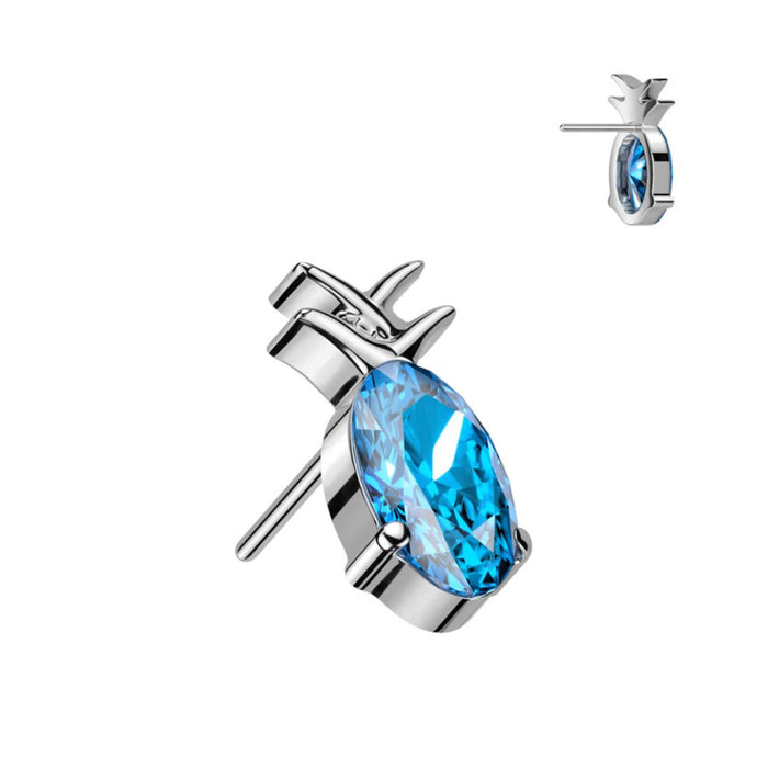 Titanium Threadless Push In Flat Back CZ Pineapple Earring